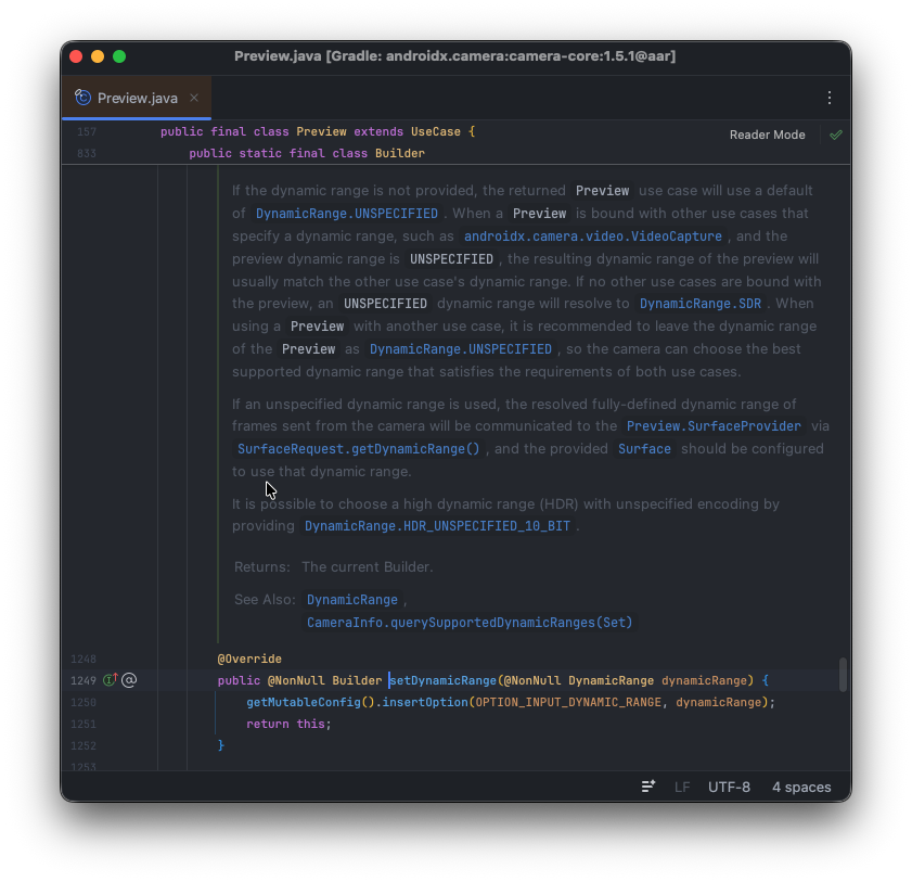 DynamicRange를 Preview.Builder()에서 적용한다면 아래와 같은 방식으로 사용될 수 있습니다.
