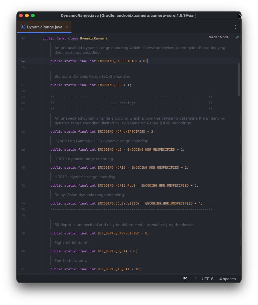 위에 목록에서 보았듯이, DynamicRange에는 UNSPECIFIED 라는 특수한 상수값이 존재합니다. 해당 상수는 다른 UseCase에 적용되어 있는 DynamicRange를 바탕으로 요구사항에 맞는 최적의